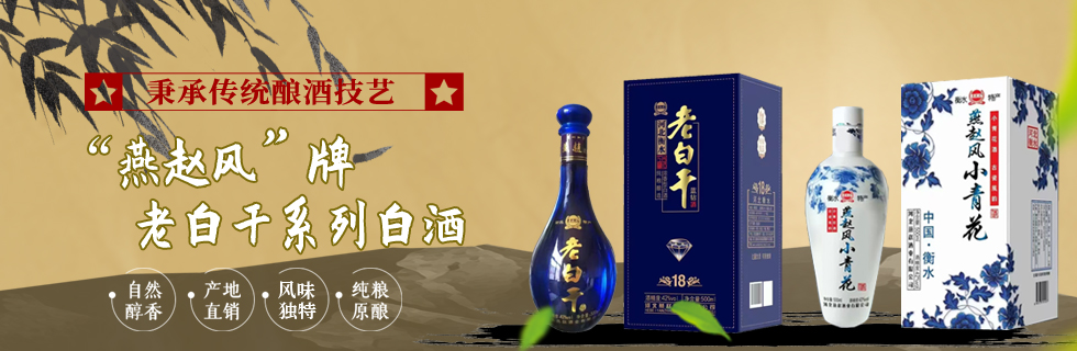 河北燕赵酒业公司主导的产品“燕赵风”牌老白干系列白酒秉承传统酿酒技艺,选用优质高粱、玉米为原料,用精选小麦踩制的清茬曲为糖化发酵剂,以新鲜的稻皮清蒸后作填充料,采取青烧混蒸老五甑工艺和二排青工艺,低温入池,地缸发酵,酒头回沙,缓慢蒸馏,分段滴酒,分收入库,精心酿造而成。
